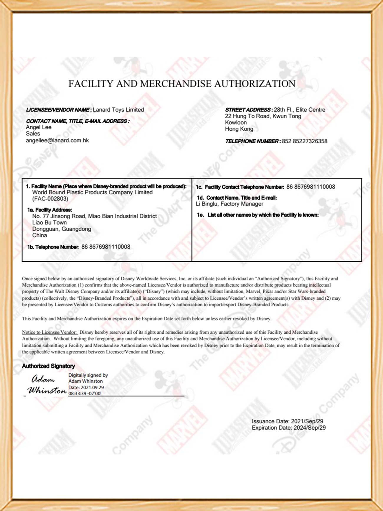 迪斯尼Disney資質(zhì)證書(shū)
