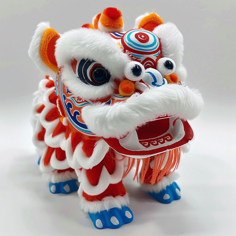 定制傳統(tǒng)中國(guó)風(fēng)舞獅塑料毛絨兒童玩具