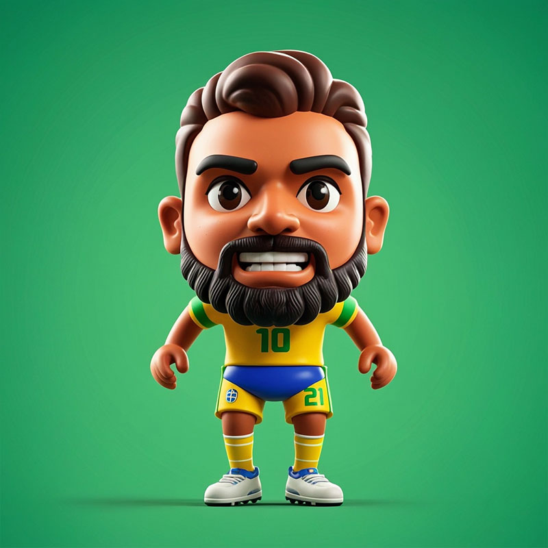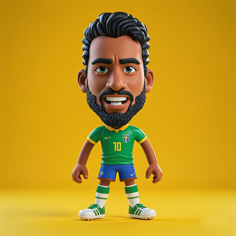 定制Q 版人偶巴西球員卡通化夸張表情動作手辦桌面擺件PVC玩具