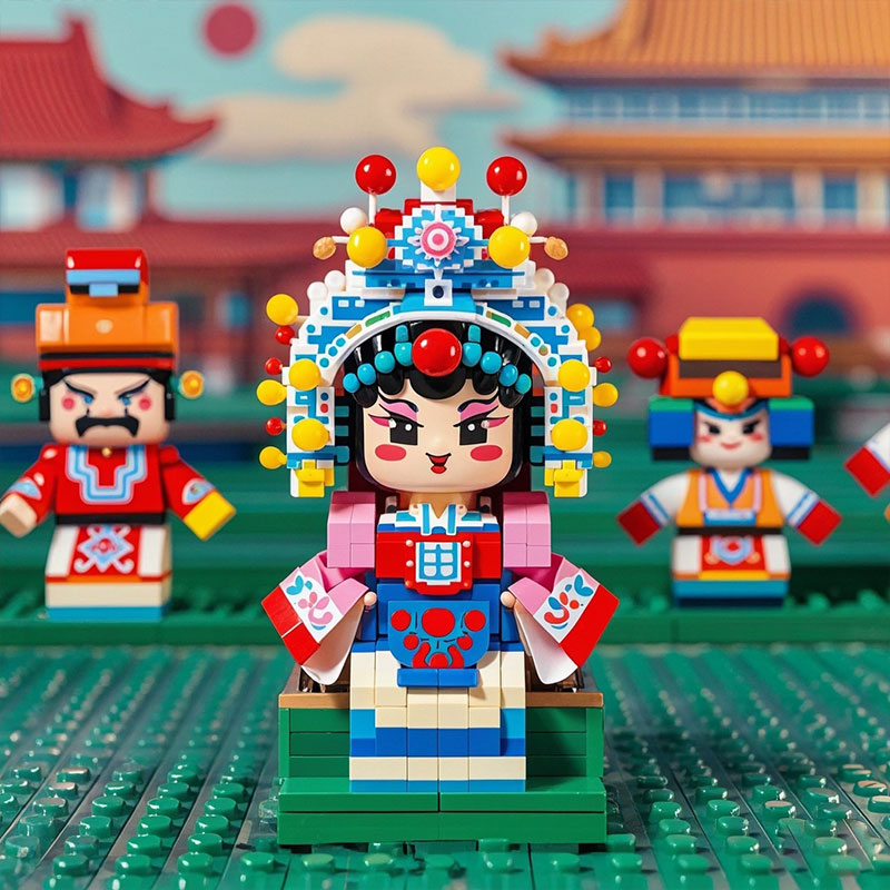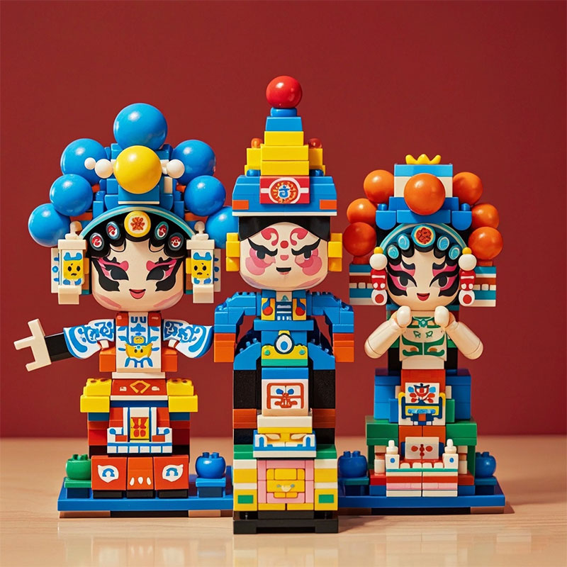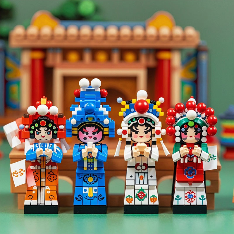 工廠(chǎng)定制中國(guó)戲劇人物紀(jì)念品彩色積木娃娃戲曲文藝創(chuàng)意擺件