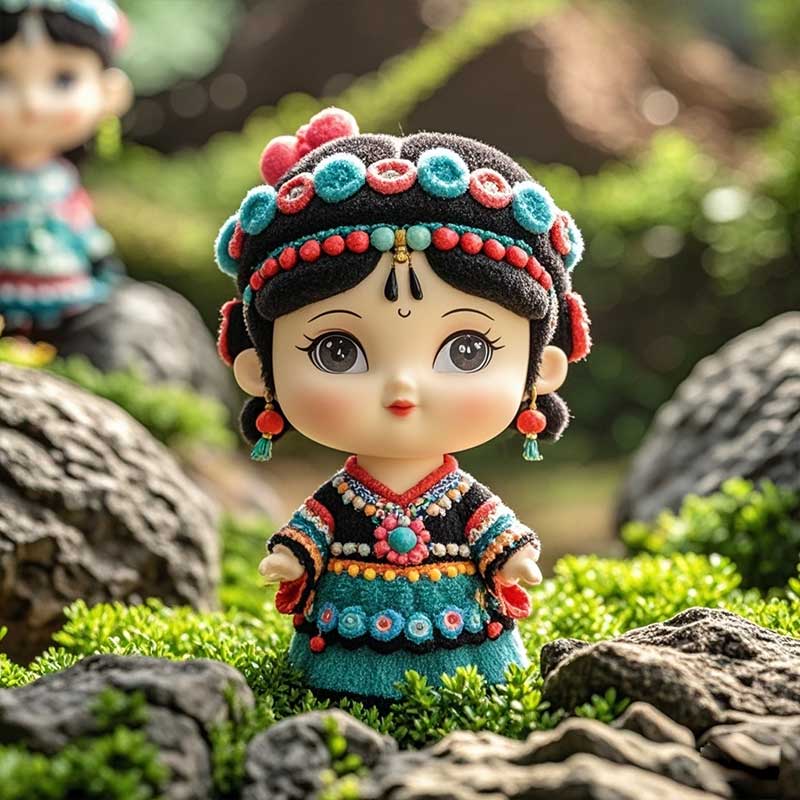 定制迷你民族風(fēng)娃娃搪膠玩具彩色植絨塑膠PVC桌面擺件mini玩具